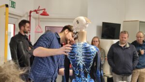Nicolai Simon zeigte uns „Chantalle“, eine mit Implantaten ausgestattete Schaufensterpuppe, und wo im menschlichen Körper heute überall Technik stecken könnte. Technik, die bei der Grundlagenforschung hier in Rottweil mit entwickelt wurde und aus der modernen Humanmedizin nicht mehr wegzudenken ist. Seien es bessere und robusterer Akkus für Herzschrittmacher oder die Möglichkeit der minimalinvasiven Behandlung von Volkskrankheiten.