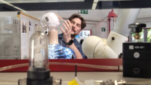Nicolai Simon zeigte uns „Chantalle“, eine mit Implantaten ausgestattete Schaufensterpuppe, und wo im menschlichen Körper heute überall Technik stecken könnte. Technik, die bei der Grundlagenforschung hier in Rottweil mit entwickelt wurde und aus der modernen Humanmedizin nicht mehr wegzudenken ist. Seien es bessere und robusterer Akkus für Herzschrittmacher oder die Möglichkeit der minimalinvasiven Behandlung von Volkskrankheiten.