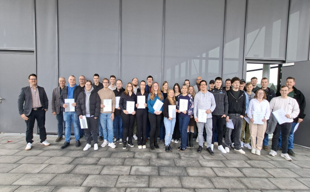 Am Freitag, den 12.12.2025, trafen sich folgerichtig alle fischgebackenen Gesellen und Facharbeiter. Mit dabei waren die Klassenlehrer und Fachlehrer sowie einige Ausbilder und Eltern. Damit wurde der „Große Saal“ des Berufsschulzentrums gut gefüllt. Schulleiter Michael Schuler hielt aufgrund der wirtschaftlichen Lage eine mahnende, aber zuversichtliche Rede, die Optimismus aus der Rolle des Publikums schöpfte. Zunächst vergaben die Klassenlehrkräfte alle Preise (für besonders gute Leistungen und einem Notendurchschnitt bis 1,7) und Lobe (für gute Leistungen bis zu einem Schnitt von 2,3). Danach ging es im kleineren Rahmen zur Zeugnisübergabe mit den Klassenlehrkräften ein letztes Mal in die jeweiligen Klassenzimmer.