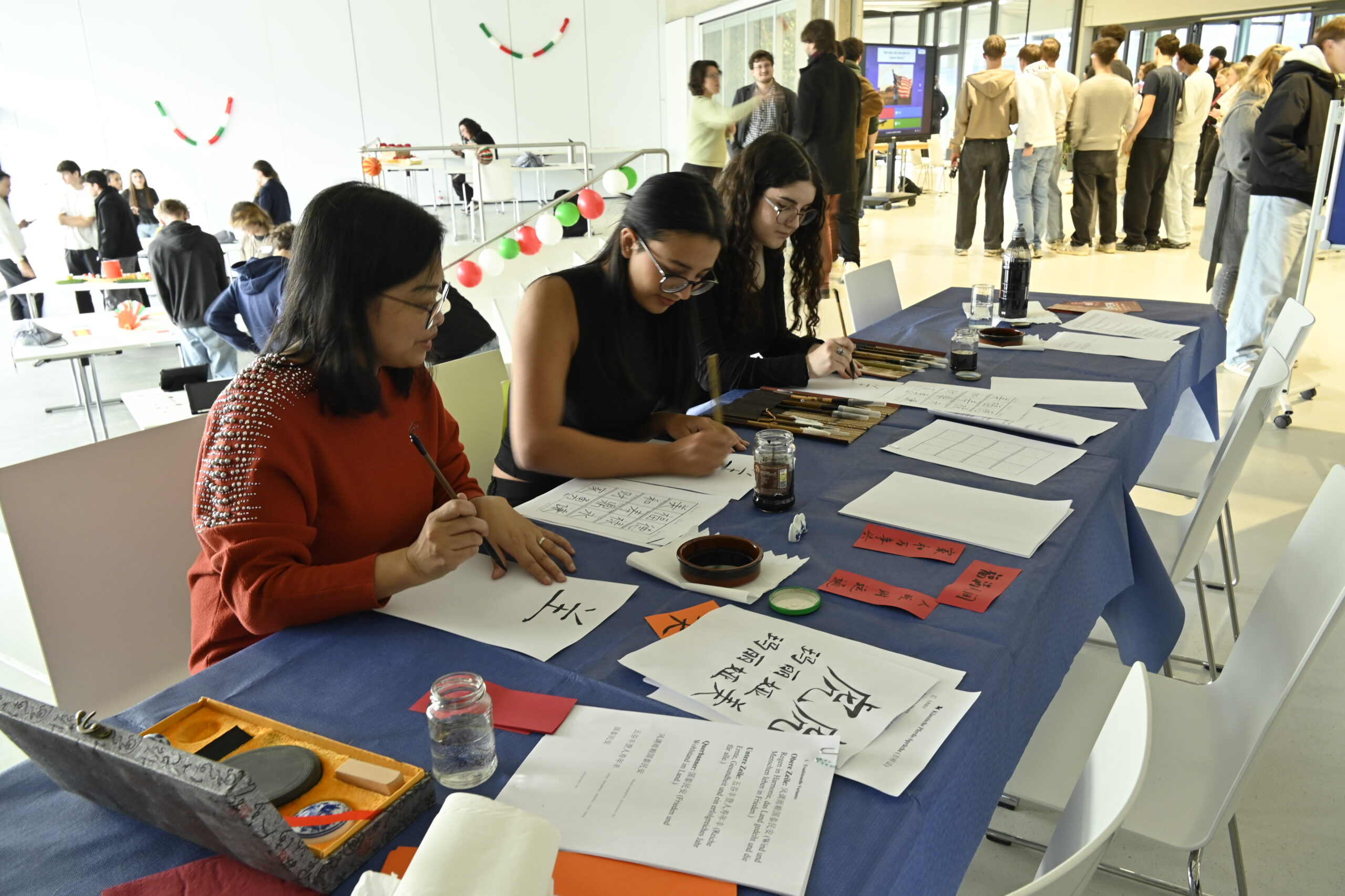 Alle Fachbereiche der Erich-Hauser-Gewerbeschule stellten sich vor und gewährten Einblicke in die Klassenzimmer und die Werkstätten und somit dem, was eine gewerbliche Schule zu bieten hat. Das vom Namensgeber inspirierte Leitbild steht für eine ganzheitliche Pädagogik mit Kopf, Herz und Hand. So konnte die EHG mit ihrem modernen Schulcampus und den großzügigen Aufenthalts- und Essensbereichen werben und auch die angenehme Lern- und Wohlfühlatmosphäre zeigen. Die hohe pädagogische Qualität garantiert eine zeitgemäße Ausbildung. Von A wie Auto und der legendären Tombola der KFZ Abteilung bis Z wie ZFA (Zahnmedizinische Fachangestellte)mit ihren Tipps zur Mund- und Zahnhygiene war alles vertreten, was eine moderne Gewerbeschule ausmacht. Die Industrie 4.0 Anlage war zu bestaunen ebenso die Schmiede. Sport, Fremdsprachen und Allgemeinbildung unterhielten die Besucher ebenso wie die Fachbereiche der Elektrotechnik, der Metall oder Holzbauabteilung. Der Teufelsknoten löste Erstaunen aus und motivierte zum Nachbau, die Gestaltungs- und Medientechnik bot echtes Kinofeeling und die Projekte der Mechatronik und der Technik und Management Klassen des TG luden zum Verweilen beim Pferderennen oder Hindernisgolf ein. Videos der AG machen die Schülerinnen und Schüler zu Schauspielern und Produzenten und zogen ein großes Publikum an. Das galt auch für den selbst geplanten und fertig gebauten 3D Drucker zweier TG-Schüler. Oder die Kunst der Kalligraphie der Chinesisch-Lehrerin.